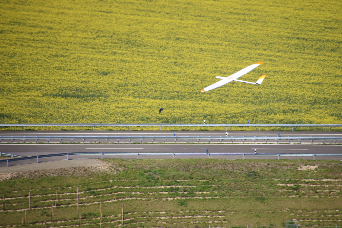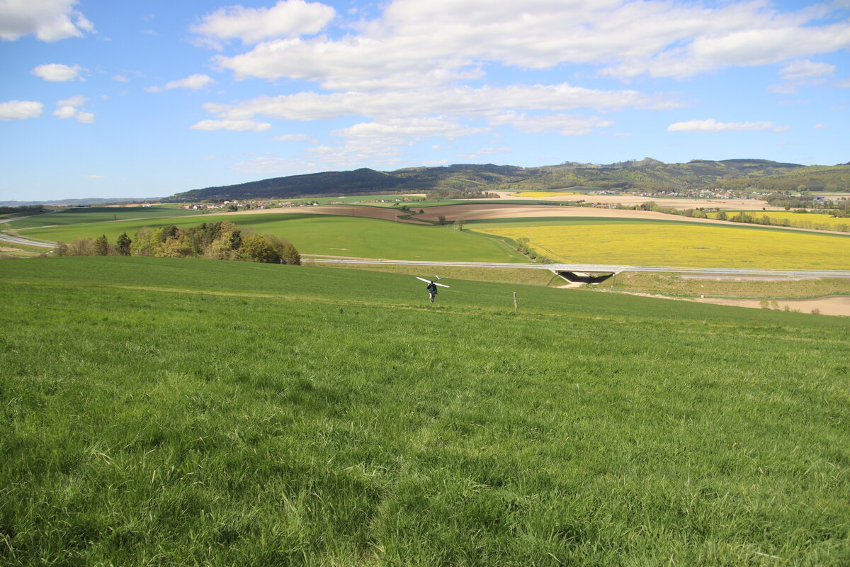 Lubošovi bylo Chomýža asi málo, přijel taky. Tak sme si teda poblbli. Start … dva obraty… přistání byly ze začátku časté, ale postupně se už taky dalo chytit a mizet nahoru.